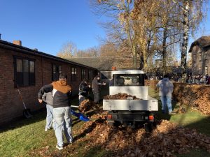 Am Vormittag durften wir im Stammlager Auschwitz im Rahmen von Erhaltungsarbeiten Laub fegen – und in dieser Jahreszeit gibt es ganz schön viel Laub.